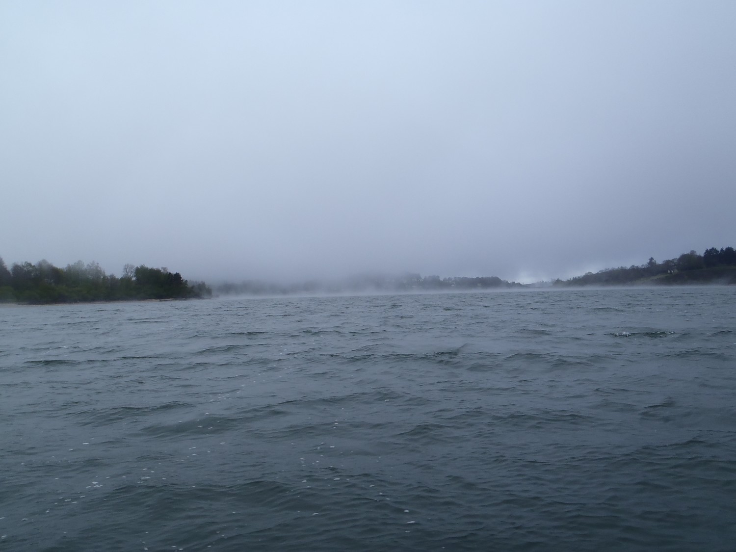Départ sur l’eau à 9h, la météo et pourrie, vent pluie neige grêle, eau à 10°C tout y passe et Il n’y à quasiment personne qui pêche.