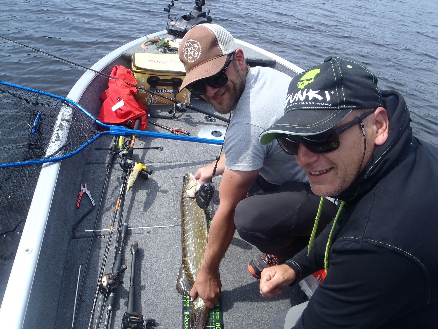 Pour ma part je me contenterais de petit 65cm pris au leurre souple sur tête plombée G Fish Pike 15gr.